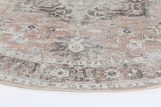 Distressed Vintage Cezanne Blush Washable Round Rug - VITAL 3082-11