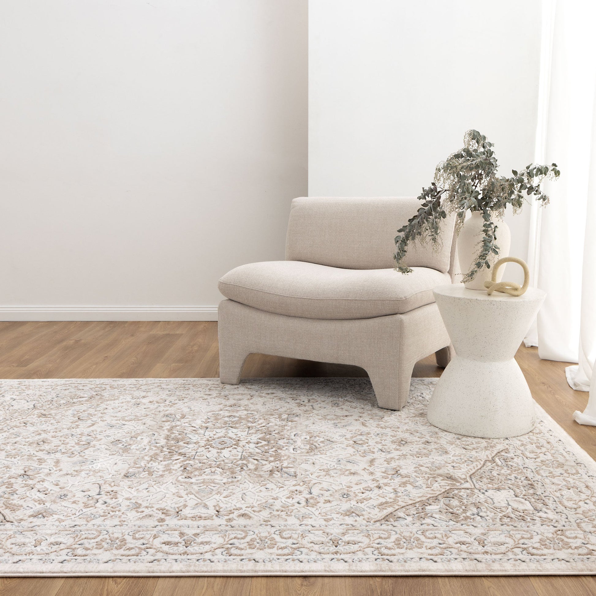 Transform your décor with the Maya Rug. Machine-made in Turkey to the highest of standards, these rugs are made from hardwearing polypropylene fibres - perfect for high-traffic areas like living rooms or hallways. Featuring a range of transitional and abstract designs in soft neutral tones, the intricate designs add a touch of personality to any room. The Maya collection features a soft 10mm high and low pile, creating an intriguing textural experience underfoot. Choose from 6 stunning transitional designs in creams, beiges and greys that seamlessly complement your home.