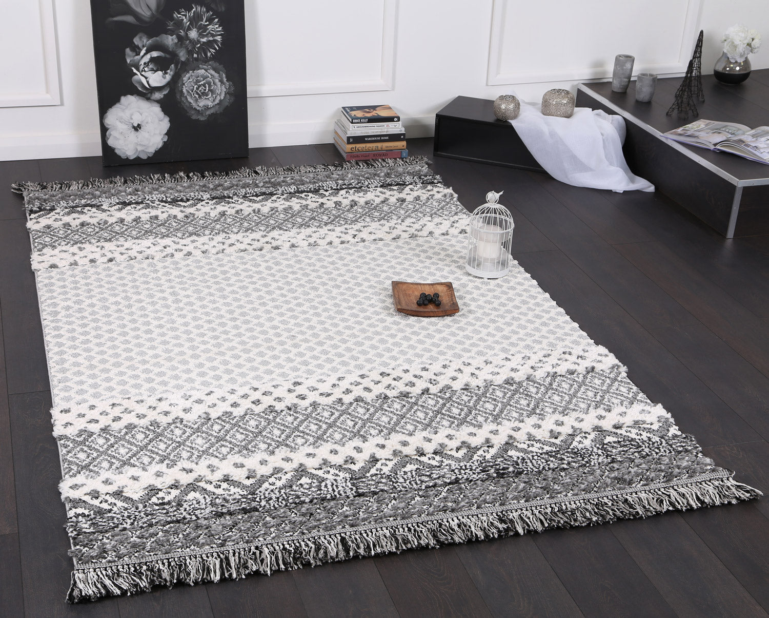 Kaza Tribal Edge Cream Anthracite Rug